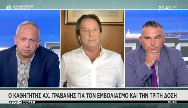 Ο καθηγητής Φαρμακολογίας στην Ιατρική Σχολή του Πανεπιστημίου Κρήτης Αχιλλέας Γραβάνης, μιλώντας στον ΣΚΑΪ και την εκπομπή «Αταίριαστοι», επανέλαβε για άλλη μια φορά την αναγκαιότητα εμβολιασμού για την προστασία από τον κορωνοϊό.