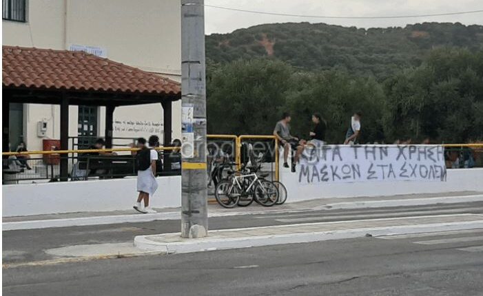 Υπό κατάληψη από τους μαθητές τελεί σήμερα το Γυμνάσιο Βουκολιών στα Χανιά. Οι μαθητές δεν επέτρεψαν στους εκπαιδευτικούς να εισέλθουν στο σχολείο και κρέμασαν πανό με συνθήματα κατά της χρήσης μάσκας στα σχολεία.