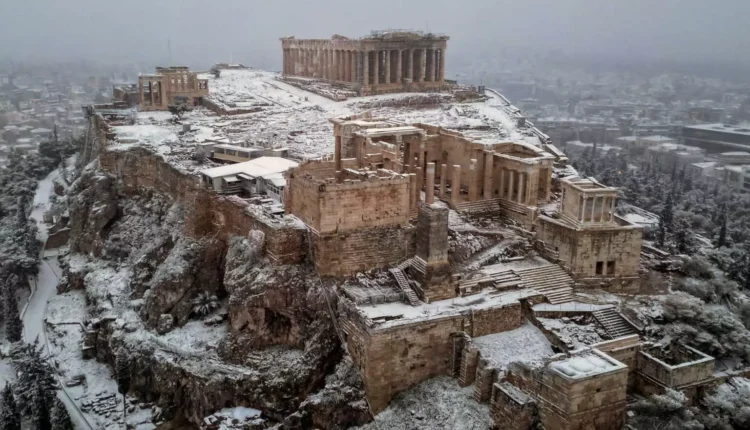 Δεν χορταίνει κανείς να βλέπει την Ακρόπολη είτε καλοκαίρι, είτε χειμώνα, είτε με βροχή είτε με χιόνια. Το εμβληματικό μνημείο τραβάει σαν μαγνήτης τα βλέμματα σε όλο τον κόσμο. Η κακοκαιρία Μπάρμπαρα που επισκέφθηκε την Αττική άφησε ένα λεπτό στρώμα χιονιού και στον Παρθενώνα.