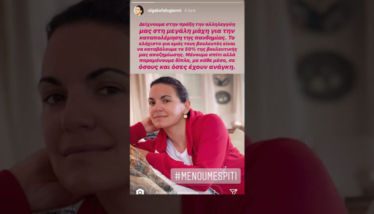 Με μία φωτογραφία από το σπίτι της, η Βουλευτής της Νέας Δημοκρατίας γνωστοποίησε ότι κατέθεσε το μισό μισθό της, στέλνοντας το μήνυμα «Μένουμε Σπίτι».