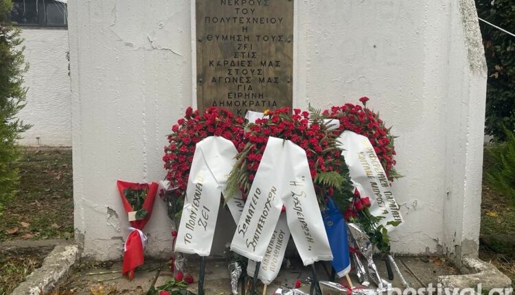 Σύμφωνα με το thestival, από νωρίς το πρωί μικροί και μεγάλοι πηγαίνουν στο μνημείο της Πολυτεχνικής Σχολής του ΑΠΘ, προκειμένου να αφήσουν ένα λουλούδι.