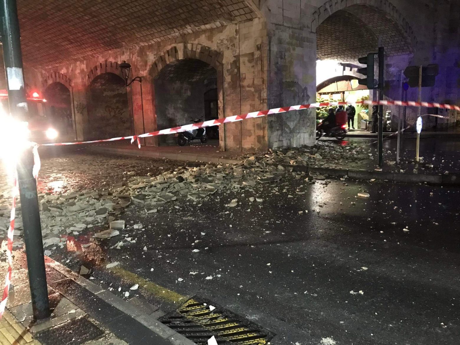 Κατέρρευσε μέρος από την Καινούργια Πόρτα στο κέντρο του Ηρακλείου και… από θαύμα δεν υπήρξαν σοβαροί τραυματισμοί, υλικές ζημιές και φθορές στα διερχόμενα αυτοκίνητα.