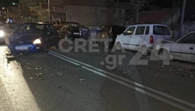 Όπως φαίνεται και στις εικόνες του Creta24, ο νεαρός «χτύπησε» με το αυτοκίνητό του τουλάχιστον 5 αυτοκίνητα προκαλώντας τους σοβαρές ζημιές.