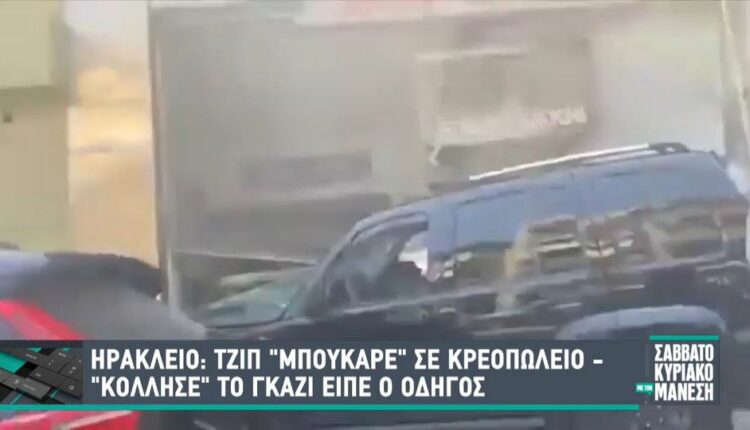 Ηράκλειο: Τζιπ εισέβαλε σε κρεοπωλείο (Βίντεο)