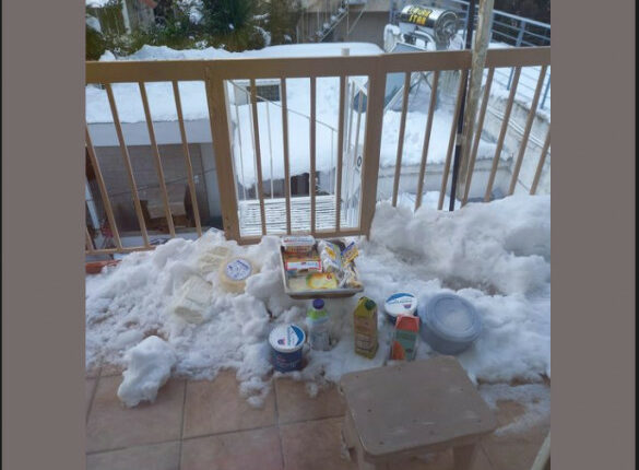 Σε μία από αυτές οι κάτοικοι έβγαλαν τα τρόφιμα που είχαν μέσα στο ψυγείο και το οποίο είναι εκτός λειτουργίας, και τα έβαλαν στο χιόνι για να μπορέσουν να τα διατηρήσουν.