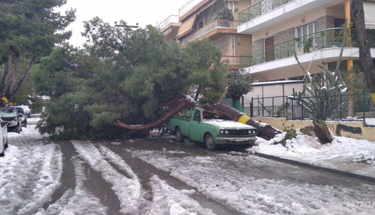 Απεγκλωβισμός σταθμευμένων οχημάτων που καταπλακώθηκαν