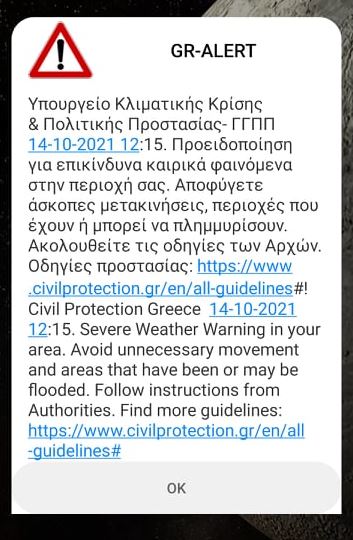 Ήδη, αποστέλλεται μήνυμα από το 112 σε κατοίκους για ιδιαίτερη προσοχή λόγω των καιρικών φαινομένων σε πολλές περιοχές της χώρας: