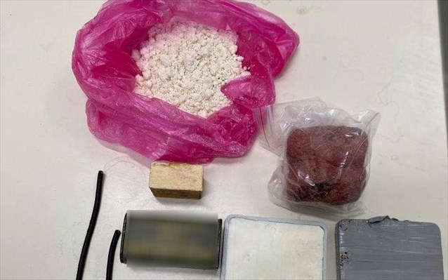 Σε έρευνα που πραγματοποιήθηκε στο αυτοκίνητο, με τη συνδρομή πυροτεχνουργού της Υποδιεύθυνσης Ασφάλειας Κέρκυρας, βρέθηκαν και κατασχέθηκαν οι δύο χειραποσκευές, που περιείχαν: