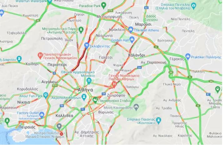 Κίνηση καταγράφεται αυτή την ώρα και στη λεωφόρο Αλίμου-Κατεχάκη αλλά και στη Μεσογείων.