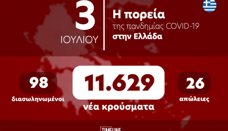 Οι νέοι θάνατοι ασθενών με COVID-19 είναι 26, ενώ από την έναρξη της επιδημίας έχουν καταγραφεί συνολικά 30.302θάνατοι.