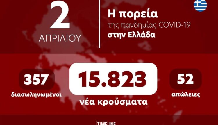 Κορωνοϊός: 15.823 νέα κρούσματα και 52 θάνατοι