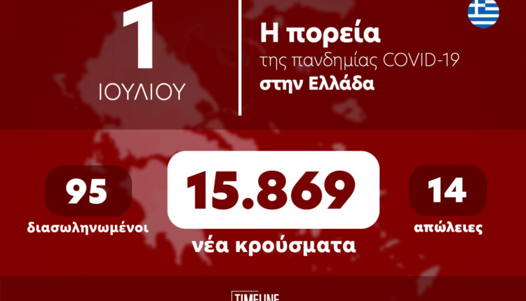 Οι νέοι θάνατοι ασθενών με COVID-19 είναι 14, ενώ από την έναρξη της επιδημίας έχουν καταγραφεί συνολικά 30.250 θάνατοι. Το 95.7% είχε υποκείμενο νόσημα ή/και ηλικία 70 ετών και άνω.