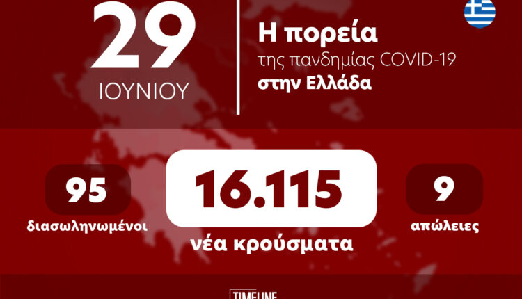 Οι νέοι θάνατοι ασθενών με COVID-19 είναι 9, ενώ από την έναρξη της επιδημίας έχουν καταγραφεί συνολικά 30.218 θάνατοι. Το 95.7% είχε υποκείμενο νόσημα ή/και ηλικία 70 ετών και άνω.