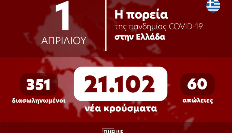 Οι νέοι θάνατοι ασθενών με COVID-19 είναι 60, ενώ από την έναρξη της επιδημίας έχουν καταγραφεί συνολικά 27.571 θάνατοι.