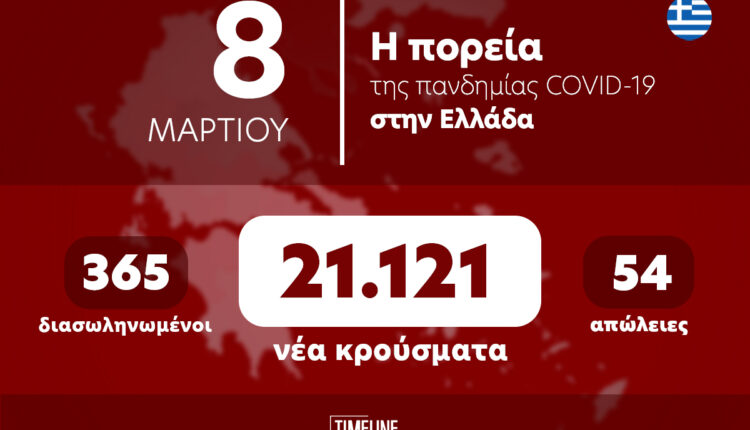 Οι νέοι θάνατοι ασθενών με COVID-19 είναι 54, ενώ από την έναρξη της επιδημίας έχουν καταγραφεί συνολικά 26.303 θάνατοι. Το 95.1% είχε υποκείμενο νόσημα ή/και ηλικία 70 ετών και άνω.