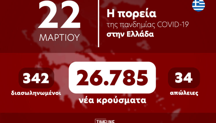 Οι νέοι θάνατοι ασθενών με COVID-19 είναι 34, ενώ από την έναρξη της επιδημίας έχουν καταγραφεί συνολικά 27.029 θάνατοι. Το 95.2% είχε υποκείμενο νόσημα ή/και ηλικία 70 ετών και άνω.