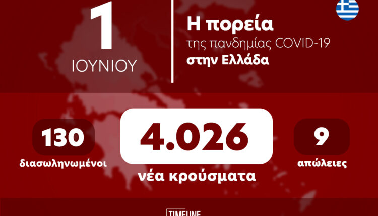 Τα νέα εργαστηριακά επιβεβαιωμένα κρούσματα της νόσου (άτομα) που καταγράφηκαν τις τελευταίες 24 ώρες ήταν 4.026.