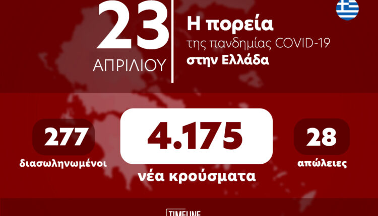 Οι νέοι θάνατοι ασθενών με COVID-19 είναι 28, ενώ από την έναρξη της επιδημίας έχουν καταγραφεί συνολικά 28.867 θάνατοι. Το 95.5% είχε υποκείμενο νόσημα ή/και ηλικία 70 ετών και άνω.