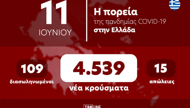 Οι νέοι θάνατοι ασθενών με COVID-19 είναι 15, ενώ από την έναρξη της επιδημίας έχουν καταγραφεί συνολικά 30.012θάνατοι.