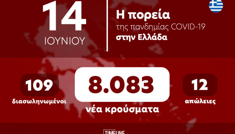 Οι νέοι θάνατοι ασθενών με COVID-19 είναι 12, ενώ από την έναρξη της επιδημίας έχουν καταγραφεί συνολικά 30.033 θάνατοι.
