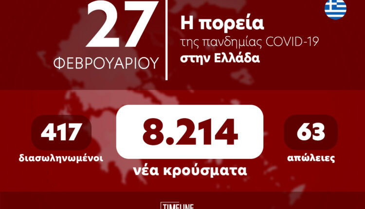 Οι νέοι θάνατοι ασθενών με COVID-19 είναι 63, ενώ από την έναρξη της επιδημίας έχουν καταγραφεί συνολικά 25.785 θάνατοι. Το 95.1% είχε υποκείμενο νόσημα ή/και ηλικία 70 ετών και άνω.