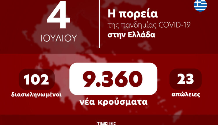 Οι νέοι θάνατοι ασθενών με COVID-19 είναι 23, ενώ από την έναρξη της επιδημίας έχουν καταγραφεί συνολικά 30.327 θάνατοι. 1 Το 95.7% είχε υποκείμενο νόσημα ή/και ηλικία 70 ετών και άνω.