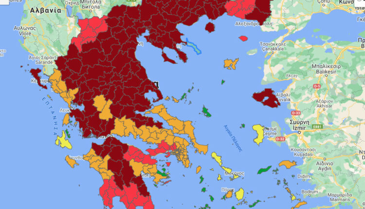 Ακόμη δύο περιοχές της χώρας μπαίνουν αυτή την εβδομάδα στο βαθύ κόκκινο (επίπεδο 5) του επιδημιολογικού χάρτη, ενώ πέντε περιφέρειες περνούν από το πορτοκαλί (επίπεδο 3) στο κόκκινο (επίπεδο 4), καθώς παρουσίασαν νέα επιδείνωση στους επιδημιολογικούς δείκτες.
