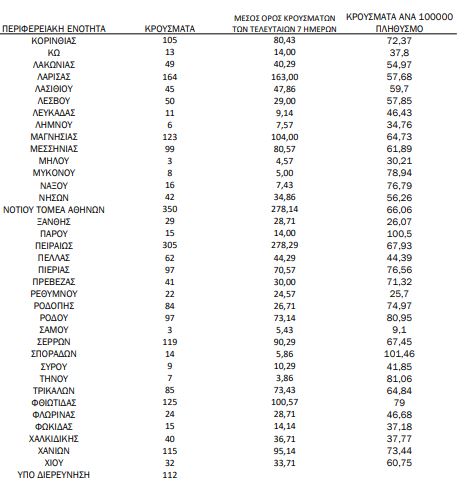 - Κεντρικός Τομέας Αθηνών: 817 κρούσματα