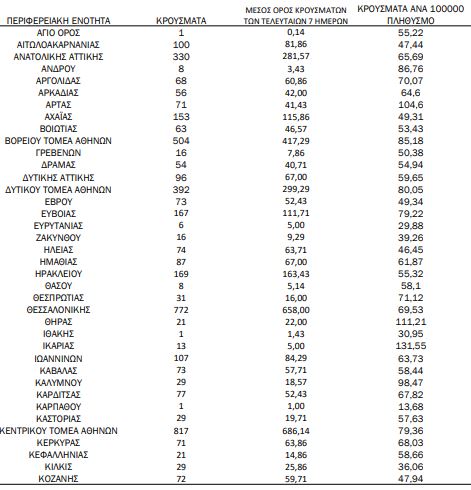 Αναλυτικότερα τα κρούσματα στις περιφερειακές ενότητες που ανήκουν στην Αττική: