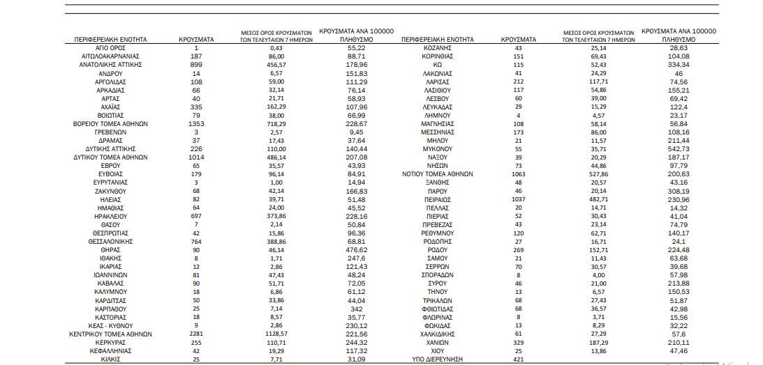 Στο «κόκκινο» παραμένει η Αττική καθώς από τα 12.537 νέα κρούσματα που ανακοίνωσε σήμερα ο ΕΟΔΥ οι 7.946 μολύνσεις εντοπίζονται στο Λεκανοπέδιο.