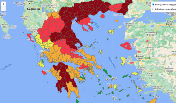 Την ίδια ώρα ακόμη 5 περιοχές θα ενταχτούν στο κόκκινο του επιδημιολογικού χάρτη μετά από εισήγηση της επιτροπής επιδημιολόγων. Μαζί με αυτές οι περιοχές που βρίσκονται στο κόκκινο είναι 22 στον αριθμό, το οποίο αντιστοιχεί στο 44% της Ελλάδας.
