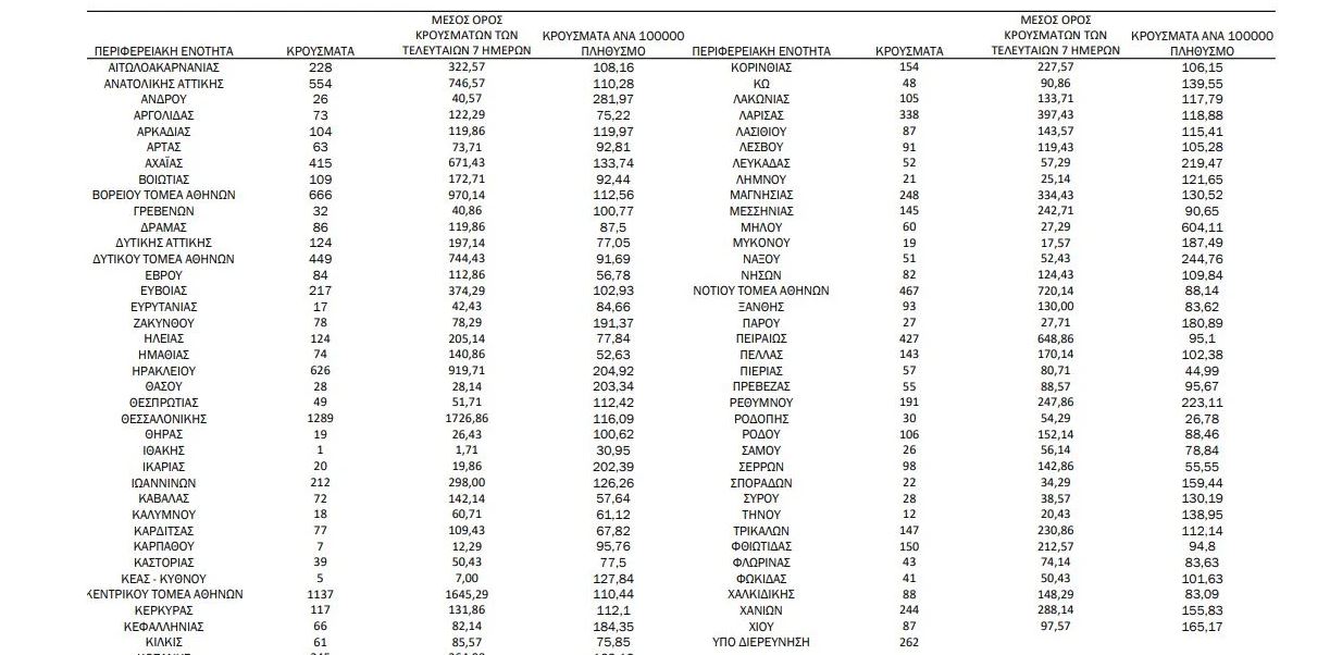 Δείτε εδώ την κατανομή των 11.956 νέων εγχώριων κρουσμάτων ανά Περιφερειακή Ενότητα: