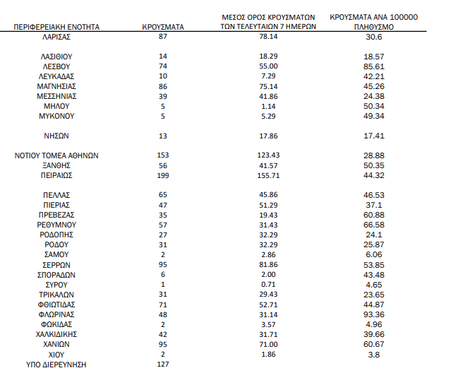 Για ακόμα μια μέρα, η Αττική κατακτά την αρνητική πρωτιά των κρουσμάτων, με τη Θεσσαλονίκη να ακολουθεί… από κοντά, τη στιγμή που και η Λάρισα αλλά και αρκετές ακόμα περιοχές προκαλούν έντονη ανησυχία.