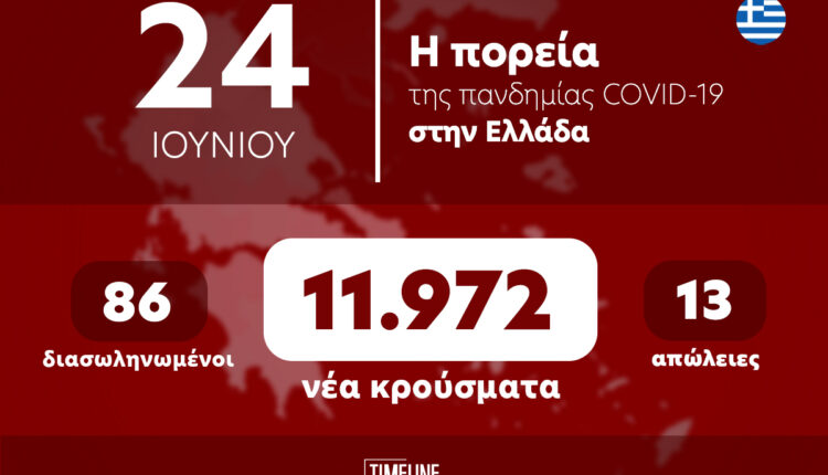 Οι νέοι θάνατοι ασθενών με COVID-19 είναι 13, ενώ από την έναρξη της επιδημίας έχουν καταγραφεί συνολικά 30.154 θάνατοι. Το 95.7% είχε υποκείμενο νόσημα ή/και ηλικία 70 ετών και άνω.