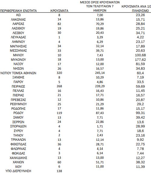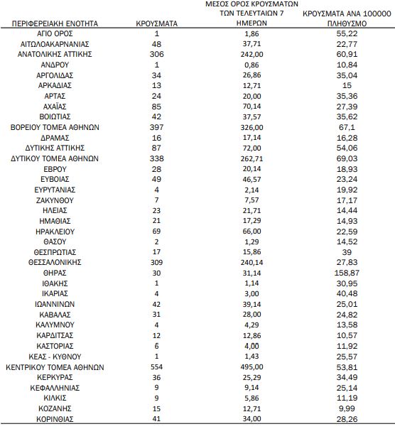 Αναλυτικότερα τα κρούσματα στις περιφερειακές ενότητες που ανήκουν στην Αττική: