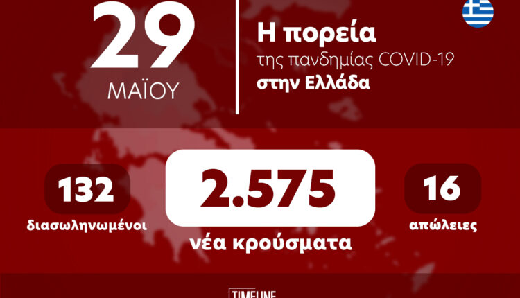 Οι νέοι θάνατοι ασθενών με COVID-19 είναι 16, ενώ από την έναρξη της επιδημίας έχουν καταγραφεί συνολικά 29.803 θάνατοι.