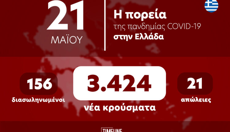 Οι νέοι θάνατοι ασθενών με COVID-19 είναι 21, ενώ από την έναρξη της επιδημίας έχουν καταγραφεί συνολικά 29.679 θάνατοι. Το 95.6% είχε υποκείμενο νόσημα ή/και ηλικία 70 ετών και άνω.