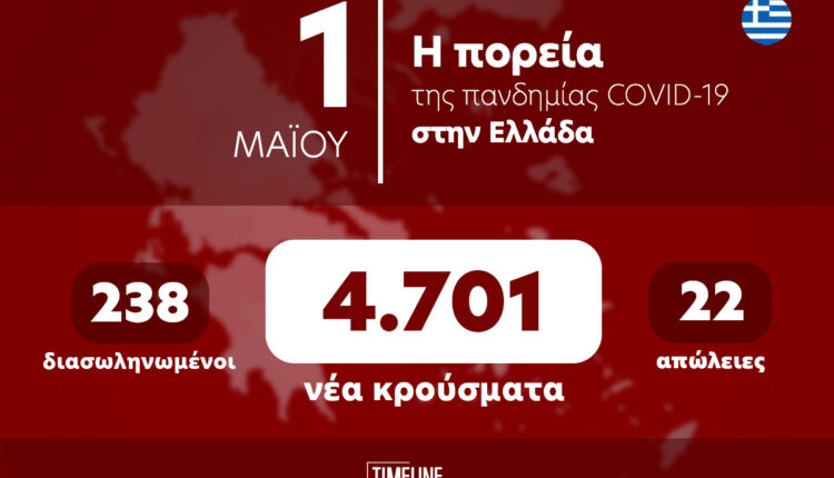 Τα νέα εργαστηριακά επιβεβαιωμένα κρούσματα της νόσου(άτομα) που καταγράφηκαν τις τελευταίες 24 ώρες ήταν 4.701.