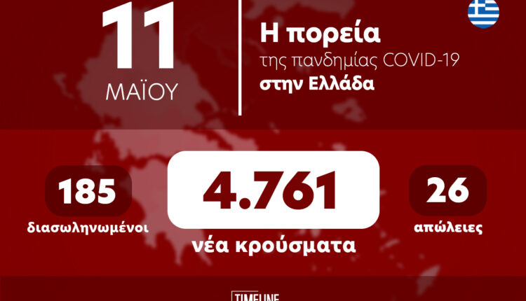 Οι νέοι θάνατοι ασθενών με COVID-19 είναι 26, ενώ από την έναρξη της επιδημίας έχουν καταγραφεί συνολικά 29.471 θάνατοι. Το 95.6% είχε υποκείμενο νόσημα ή/και ηλικία 70 ετών και άνω.