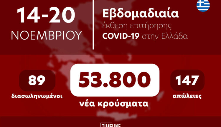 Την εβδομάδα αναφοράς καταγράφηκαν 147 θάνατοι ασθενών COVID-19 (14 ανά εκατομμύριο πληθυσμού: 23% εβδομαδιαία μεταβολή) εκ των οποίων οι 22 (15%) απεβίωσαν μετά την παρέλευση τουλάχιστον 29 ημερών από την ημερομηνία εργαστηριακής επιβεβαίωσης τηςλοίμωξης COVID-19, ενώ από την έναρξη της επιδημίας έχουν καταγραφεί συνολικά 34.178 θάνατοι, με το 96.1% είχε υποκείμενο νόσημα ή/και ηλικία 70 ετών και άνω.