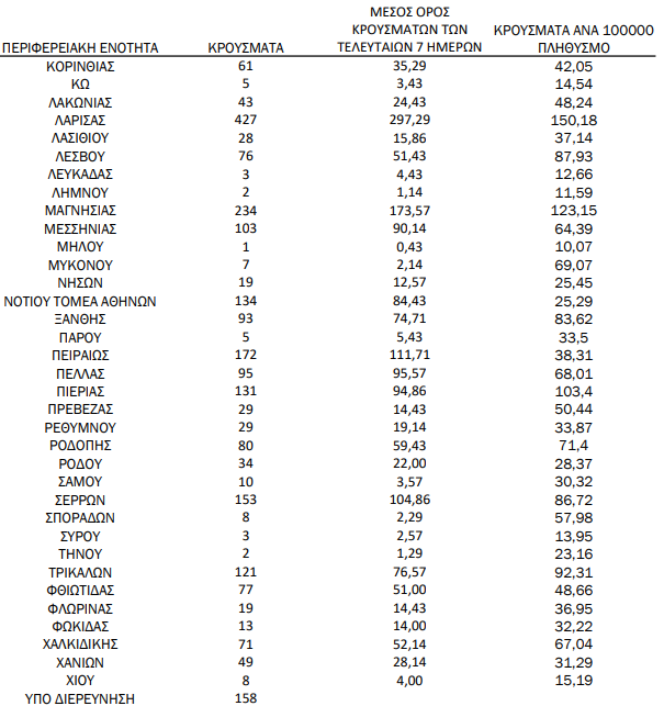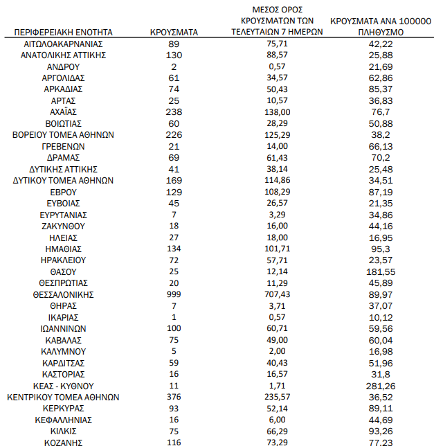 Αναλυτικά η κατανομή των κρουσμάτων σε όλη την Ελλάδα: