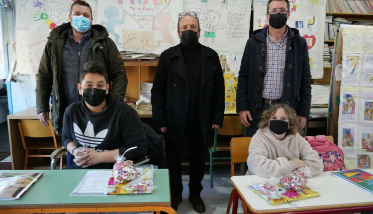 Τους κυρίους Κιάκα και Τριγώνη υποδέχθηκε ο μοναδικός δάσκαλος και Προϊστάμενος του σχολείου κ.Στέργιος Κουτίκας, ο οποίος καθημερινά διδάσκει την 9χρονη Σταυρούλα και τον 12χρονο Κώστα. Μάλιστα τα παιδιά δώρισαν στους Αντιδημάρχους ένα όμορφο ημερολόγιο και ένα καλαίσθητο γλυπτό που τα ίδια δημιούργησαν.