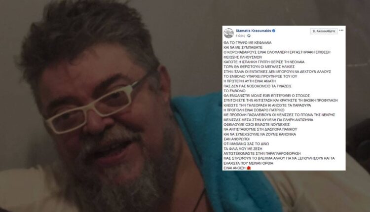 H ανάρτηση του Σταμάτη Κραουνάκη για τον κορωνοϊό: