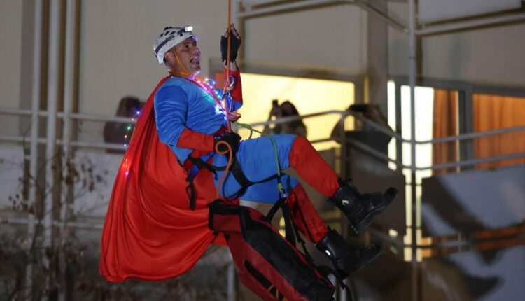 Έξι Ιπτάμενοι Αγιοβασίληδες, με φωτάκια στις στολές τους, συνοδευόμενοι από τον Μπάτμαν και τον Σούπερμαν, κατέβηκαν με σχοινιά από όροφο σε όροφο εξωτερικά των κλινικών του 3ου κτηρίου στο ΠαΓΝΗ, στέλνοντας το δικό τους μήνυμα ελπίδας και χαράς στα μικρά παιδιά και τους συνανθρώπους μας που νοσηλεύονται τις γιορτινές αυτές ημέρες στο νοσοκομείο.