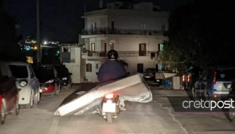 Έναν ιδιαίτερο τρόπο βρήκε ένας οδηγός μοτοσικλέτας στο Ηράκλειο της Κρήτης να μεταφέρει ένα διπλό στρώμα κρεβατιού.
