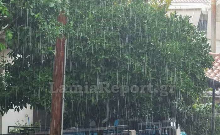 Μια ξαφνική νεροποντή γύρω στη 1 το μεσημέρι, διέκοψε απότομα τα Σαββατιάτικα ψώνια στο κέντρο της Λαμίας.