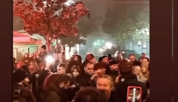 Στη συνέχεια, ο κόσμος γέμισε την πλατεία που βρίσκεται το μεζεδοπωλείο και συνέχισαν να χορεύουν και να τραγουδούν μέχρι το πρωί.