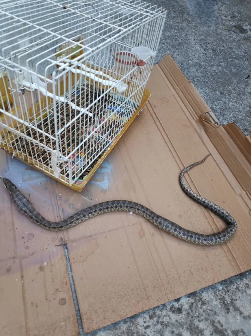 Όπως περιγράφει ο ιδιοκτήτης του σπιτιού στο tinealarissa.gr, «το κλουβί με το καναρίνι το είχαμε κρεμασμένο στον τοίχο του σπιτιού και ξαφνικά είδα το φίδι να έχει τρυπώσει μέσα και να τρώει το καναρίνι μας. Όπως αντιλαμβάνεστε το σοκ ήταν μεγάλο, να μπει φίδι στην αυλή μας και να φάει το καναρίνι; Ευτυχώς που δεν ήταν η γυναίκα μου εκεί γιατί σίγουρα θα λιποθυμούσε από το φόβο της».
