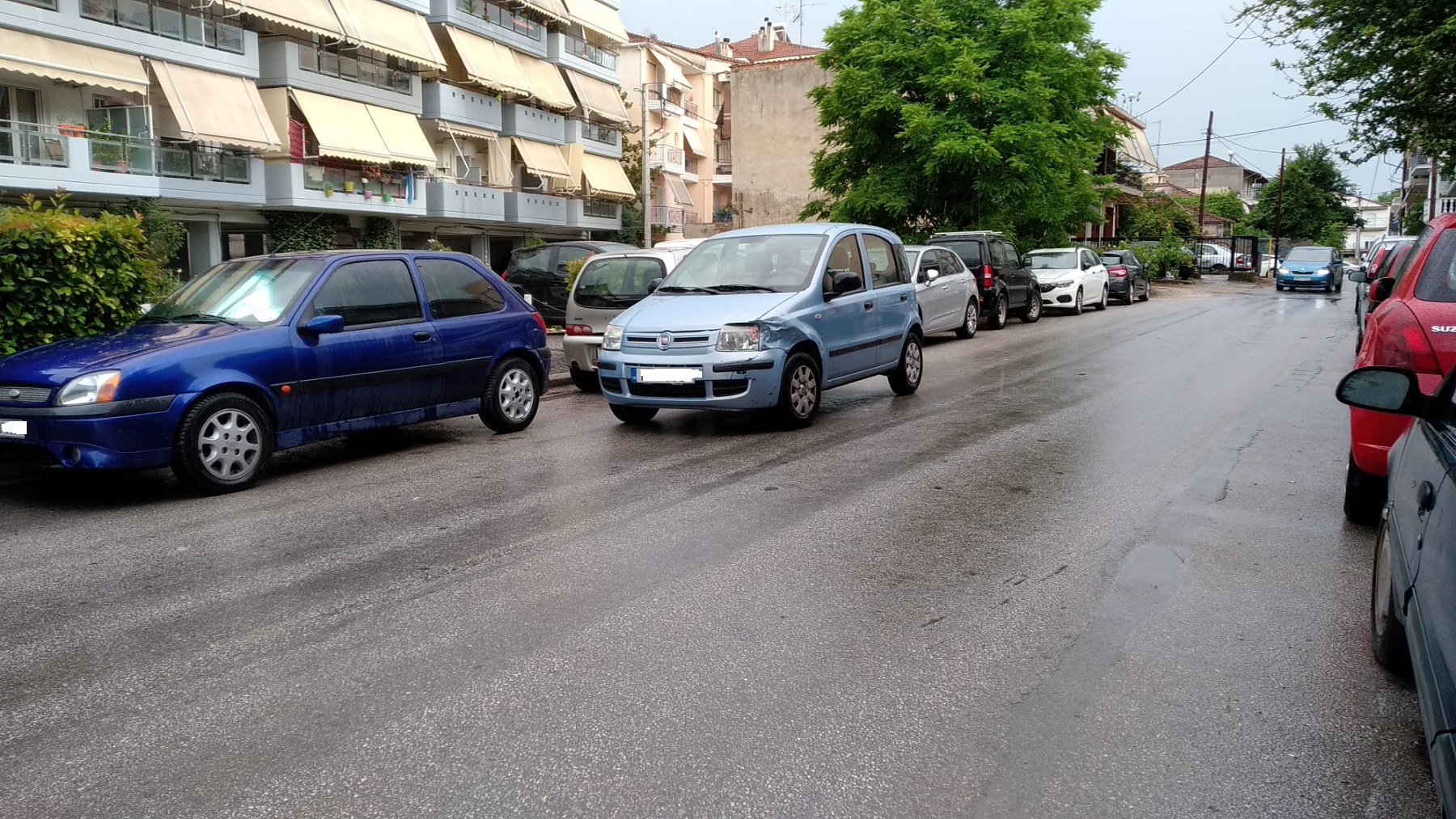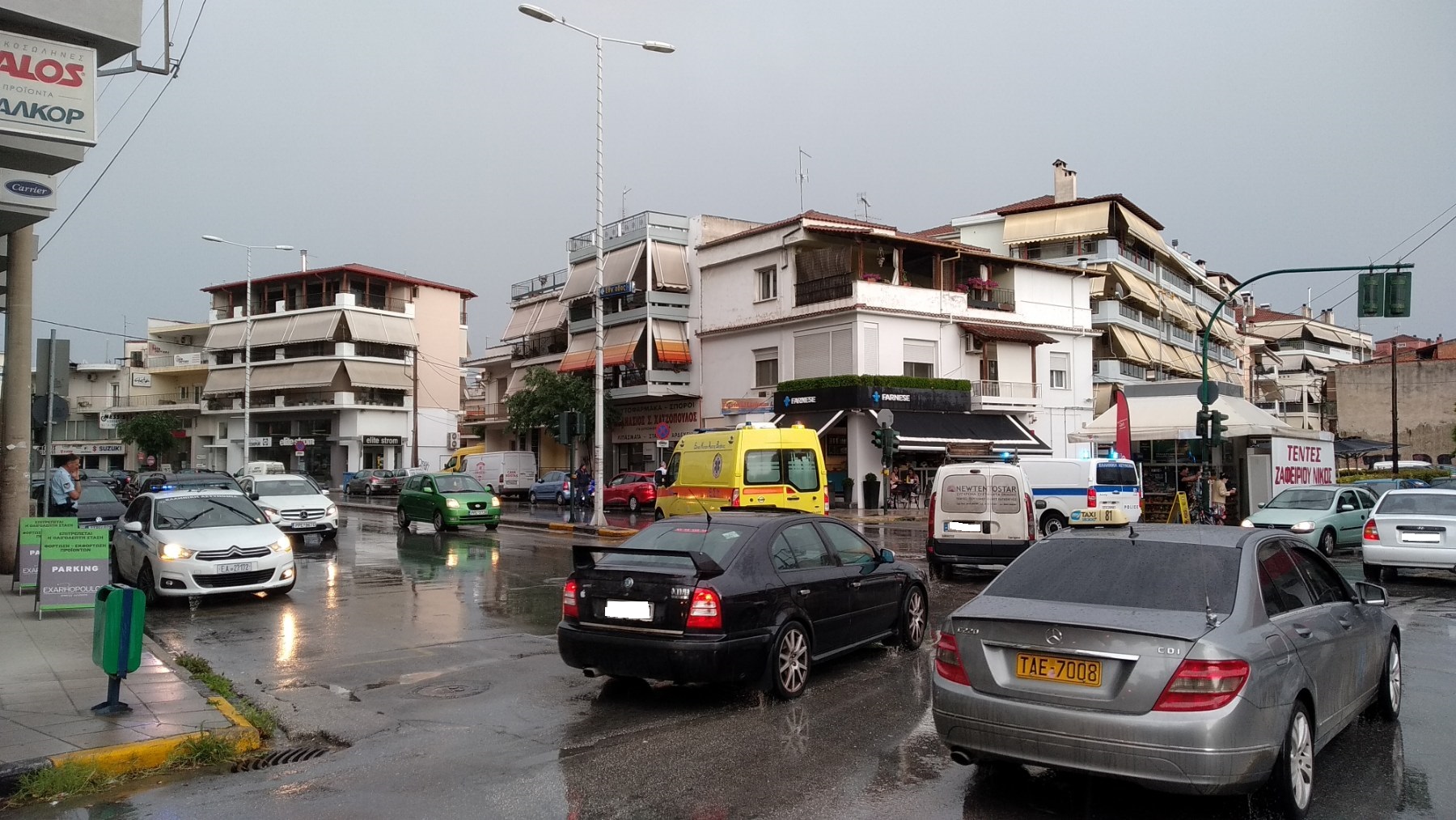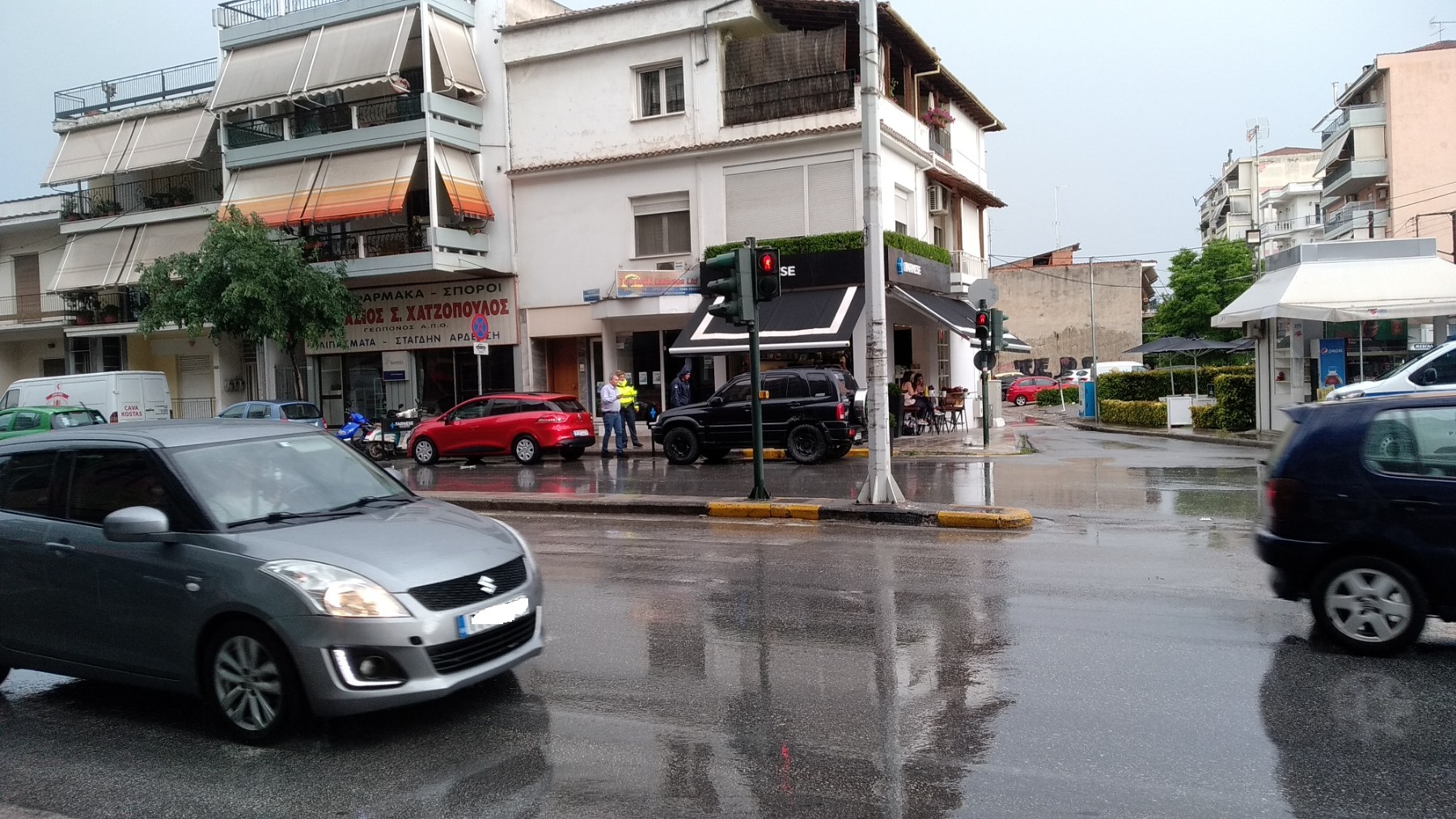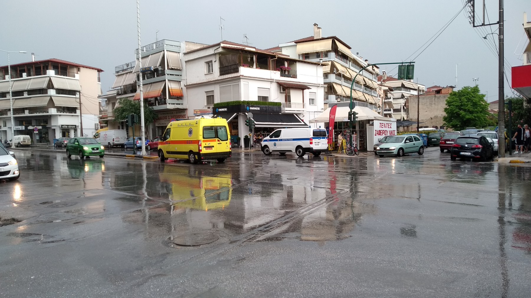 Ενώ το μπουρίνι και η δυνατή βροχή βρισκόταν σε εξέλιξη νωρίς το απόγευμα στη Λάρισα και ειδικότερα λίγο πριν τις 6 μ.μ., τρία αυτοκίνητα διασχίζοντας το ολισθηρό οδόστρωμα στην οδό Ηρώων Πολυτεχνείου στο ύψος της οδού Υψηλάντου, από το απέναντι ρεύμα, συγκρούστηκαν μεταξύ τους κάτω από αδιευκρίνιστες ως στιγμής συνθήκες.