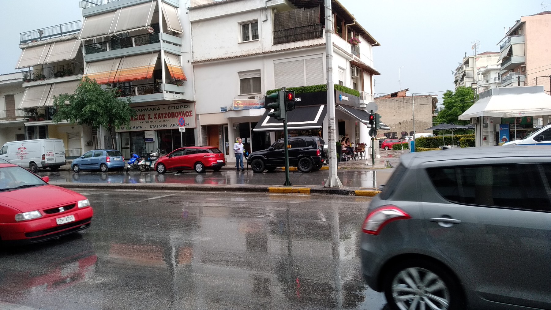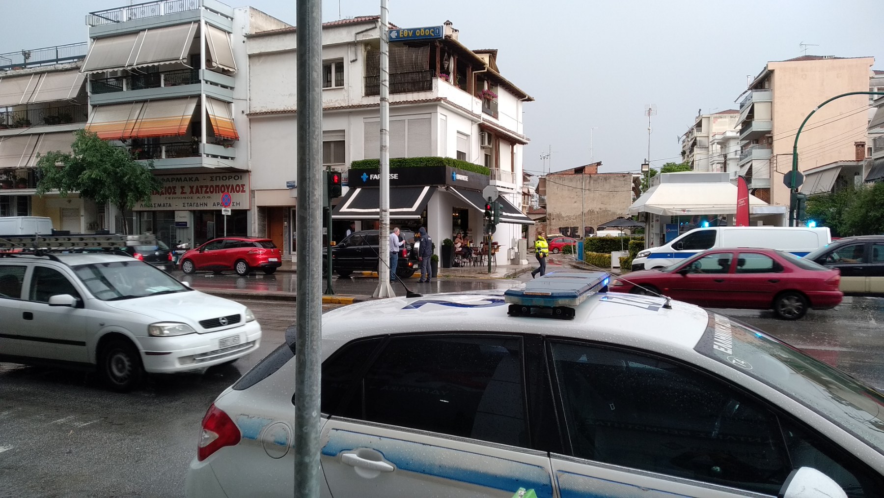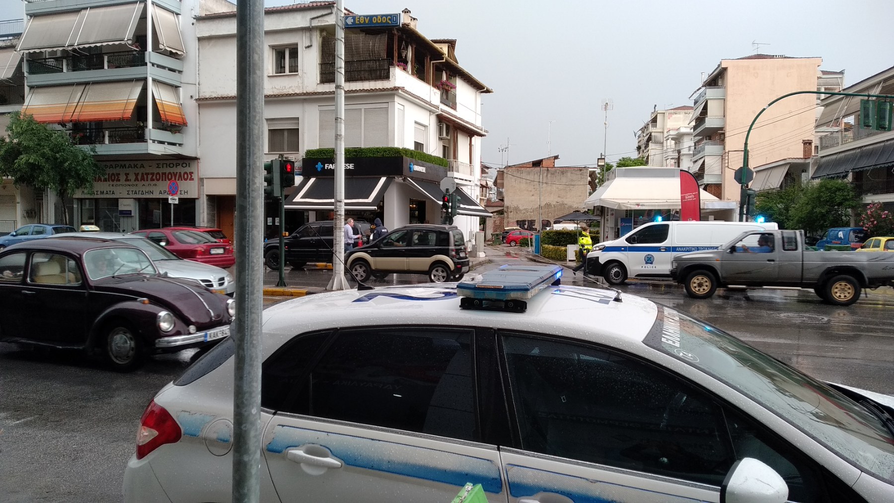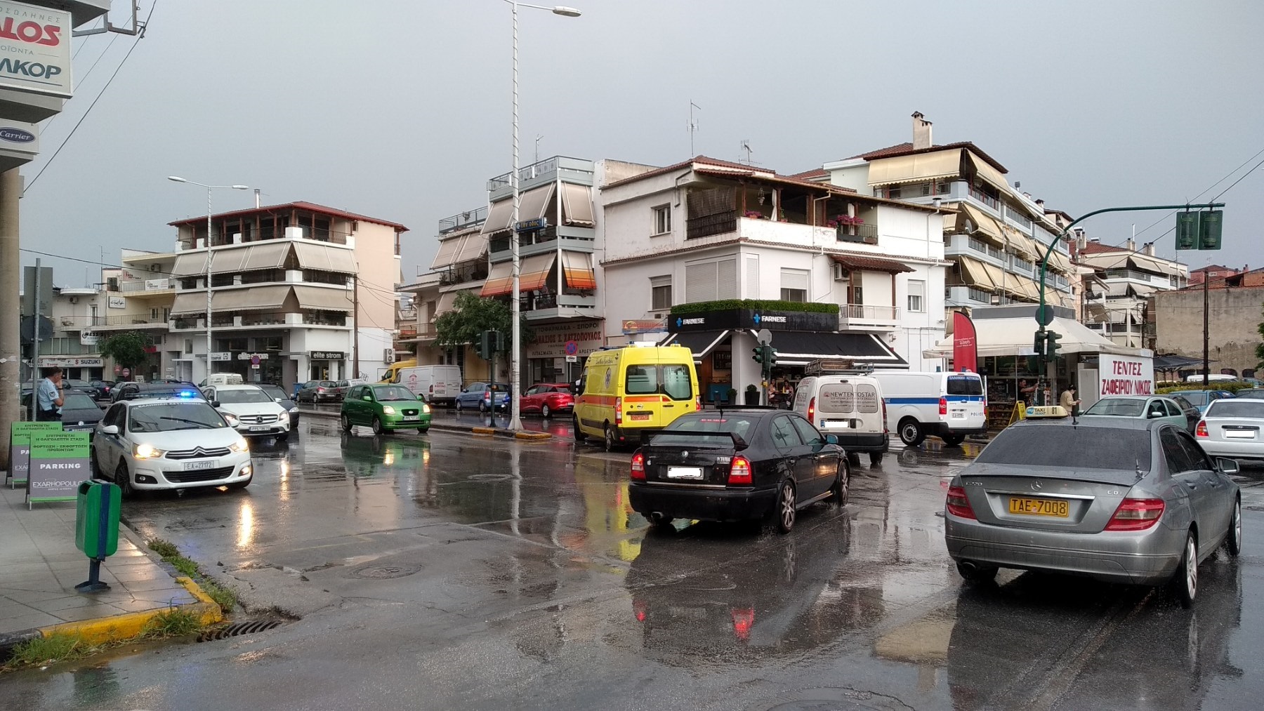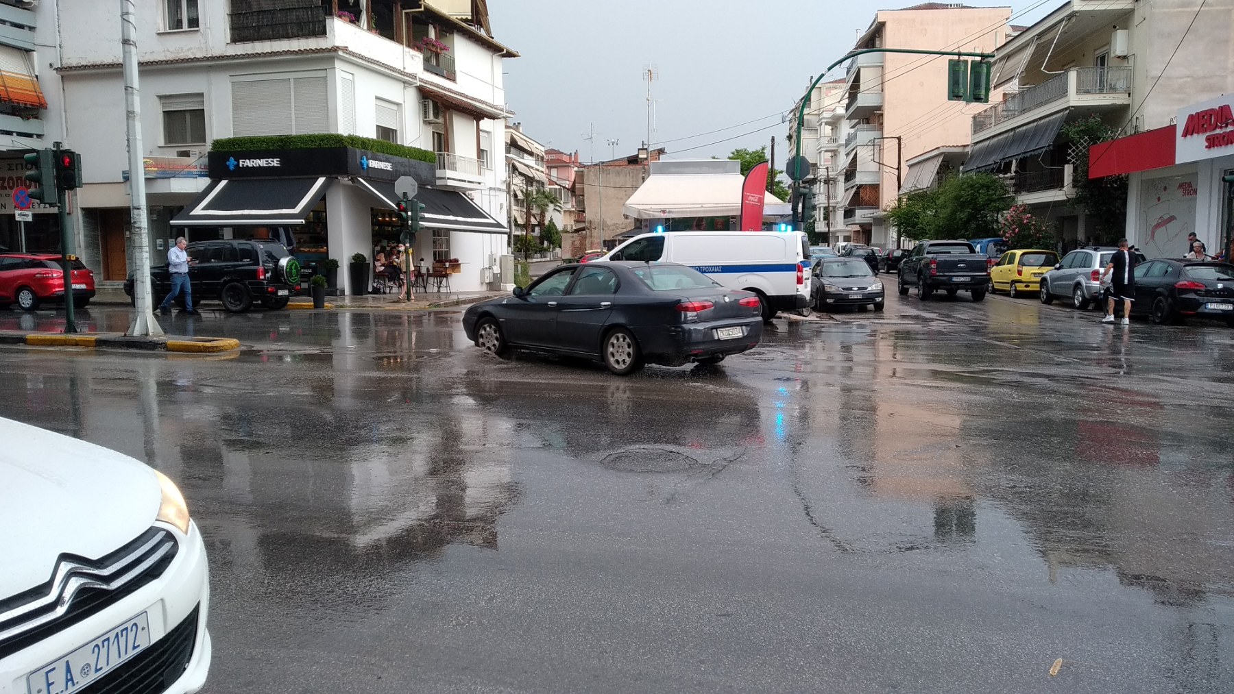 Ενώ το μπουρίνι και η δυνατή βροχή βρισκόταν σε εξέλιξη νωρίς το απόγευμα στη Λάρισα και ειδικότερα λίγο πριν τις 6 μ.μ., τρία αυτοκίνητα διασχίζοντας το ολισθηρό οδόστρωμα στην οδό Ηρώων Πολυτεχνείου στο ύψος της οδού Υψηλάντου, από το απέναντι ρεύμα, συγκρούστηκαν μεταξύ τους κάτω από αδιευκρίνιστες ως στιγμής συνθήκες.